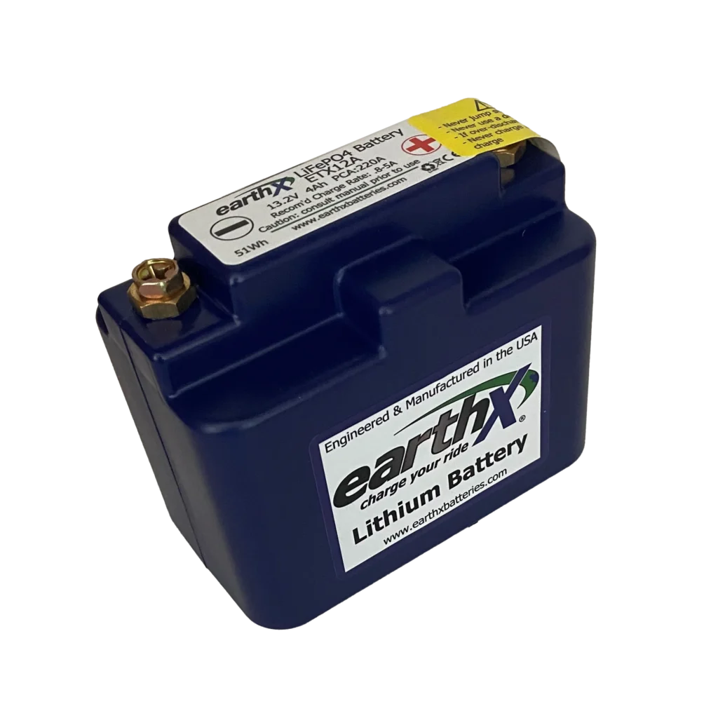 The ETX12A is a lithium iron phosphate (LiFePO4) starter battery designed to produce high cranking amps to turn over your engine and lasts much longer than your lead acid battery. The ETX-Series of starter batteries are the most innovative and technology advanced batteries on the market.