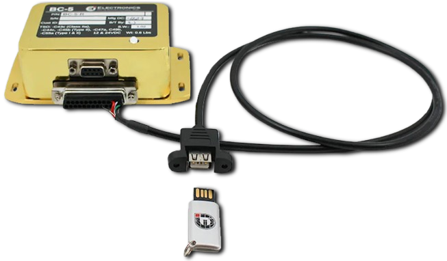 The BC-5R is a multifunction Data Recorder, designed to record data in five categories. The BC-5R is encased in a 3.80” x 2.64” x 1.6” gold-plated enclosure. The BC-5R can be mounted under the instrument panel or in an equipment bay. It comes equipped with a USB cable and data stick for accessing stored data.